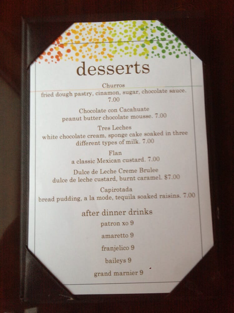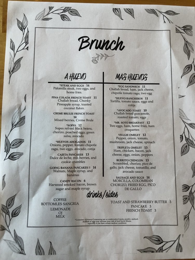 Corn tortillas, Mexican sausage, Jack cheese, onion, cilantro, tomatillo salsa, avocado salsa. Served with rice and beans.