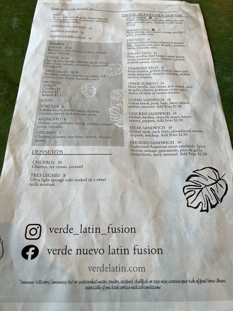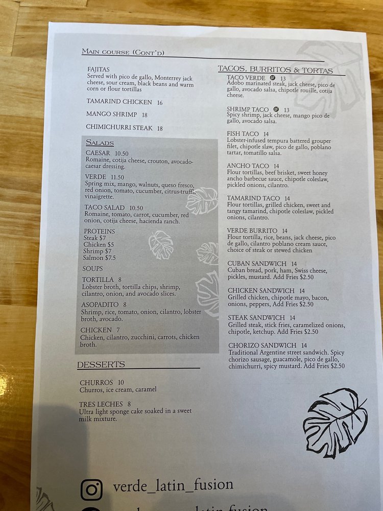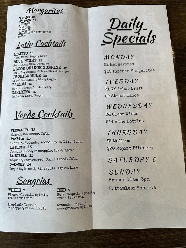 Verde Mexican Nuevo Latin Fusion offers a trendy and vibrant dining experience with a diverse menu that combines Mexican and Latin American flavors. The restaurant provides a welcoming atmosphere with outdoor seating, live music, and a full bar. Customers rave about the delicious food, friendly service, and affordable prices. Highlights include $2 tacos on Tuesdays, bottomless sangria on weekends, and mouthwatering dishes like fish tacos and mofongo. The menu boasts a variety of starters, entrees, sandwiches, desserts, and drinks. With its fresh ingredients, reasonable portions, and attentive staff, Verde is a must-visit spot for those craving authentic Latin fusion cuisine in Huntersville, NC.
